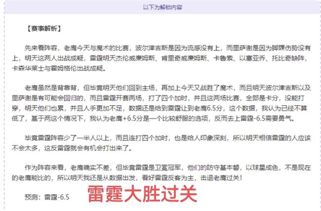 以下为解锁内容:含赛事解析+数据分析+观点参考
