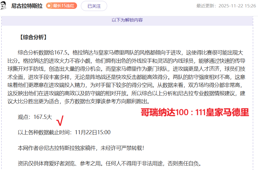 解锁内容包括:综合分析+比赛建议(数据观点+附加观点)