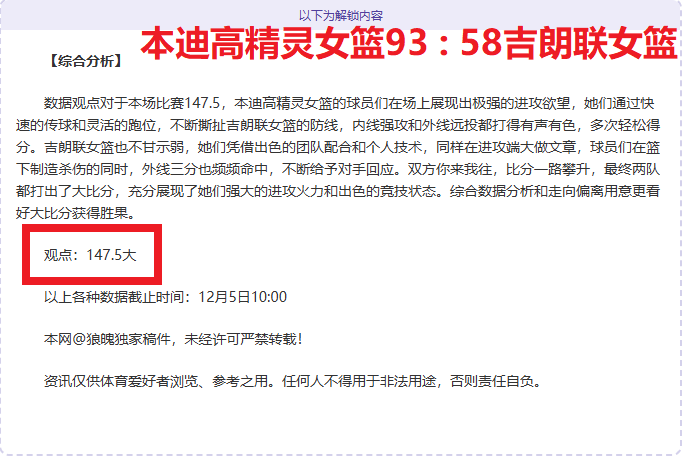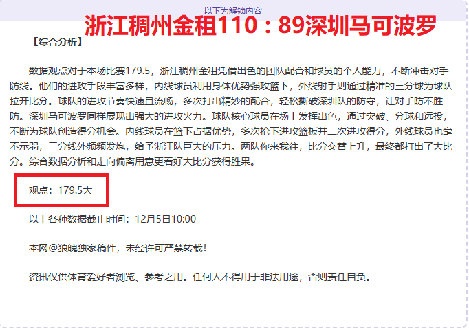 解锁内容包括:综合大数据分析+分解赛事走向+比赛建议+作者观点数据