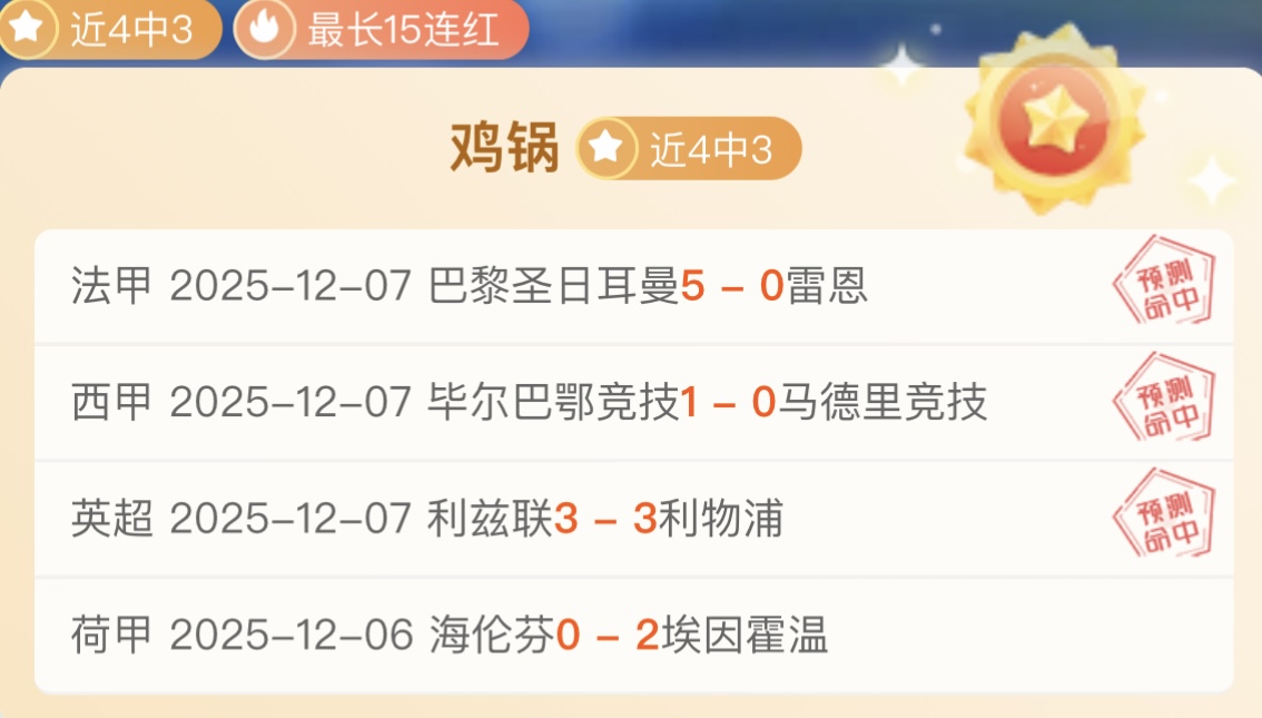 战绩回顾:昨日【超级重点】西甲毕尔巴鄂竞技完美高位全胜,【超级重点】6胜5,成绩出色!总进球数1场,德甲海登海姆大方向完美全胜,总进球数近13胜10,成绩很出色!解锁文章6战拿到3胜3负,早场成绩不佳,晚场3战利兹联、毕尔巴鄂、大巴黎全胜!赞赏数据1场,足协杯河南队被诱导了,赞赏连胜被终结了!鸡锅不追求场次多,追求少而精准,绝不滥竽充数,必须把老铁们的每一份信任都转化为胜利!