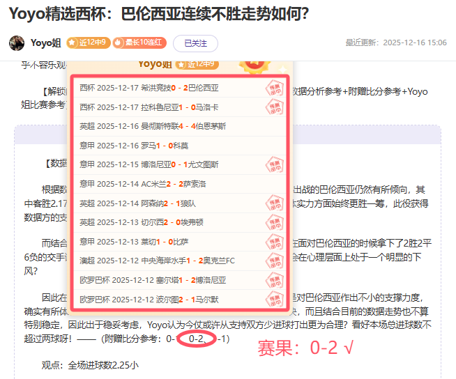 【上期回顾】:昨天私推暂停,而公推西杯重返胜轨,近16胜12表现不错!另外超级重点西杯方案同样拿下彩蛋,近6胜5依然棒棒哒!——今天核心赛事已确认,信心依旧,各位可点击一下【赞赏】按钮给予鼓励,轻松在“站内信”获取当天新鲜信心专场哦!多一份参考离喜悦再近一步,Yoyo将继续率粉粉们继续前行~