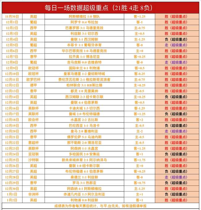 战绩回顾:昨日2战全胜,很舒服!【数据超级重点】英超利兹联方向完美全胜,【数据超级重点】近29胜21,成绩很出色!【总进球数超级重点】昨日没有发送,【总进球数超级重点】依然近4胜3!解锁文章1战,英超热刺方向稳稳胜利,文章近7胜6!鸡锅不追求场次多,追求少而精准,绝不滥竽充数,必须把老铁们的每一份信任都转化为胜利!